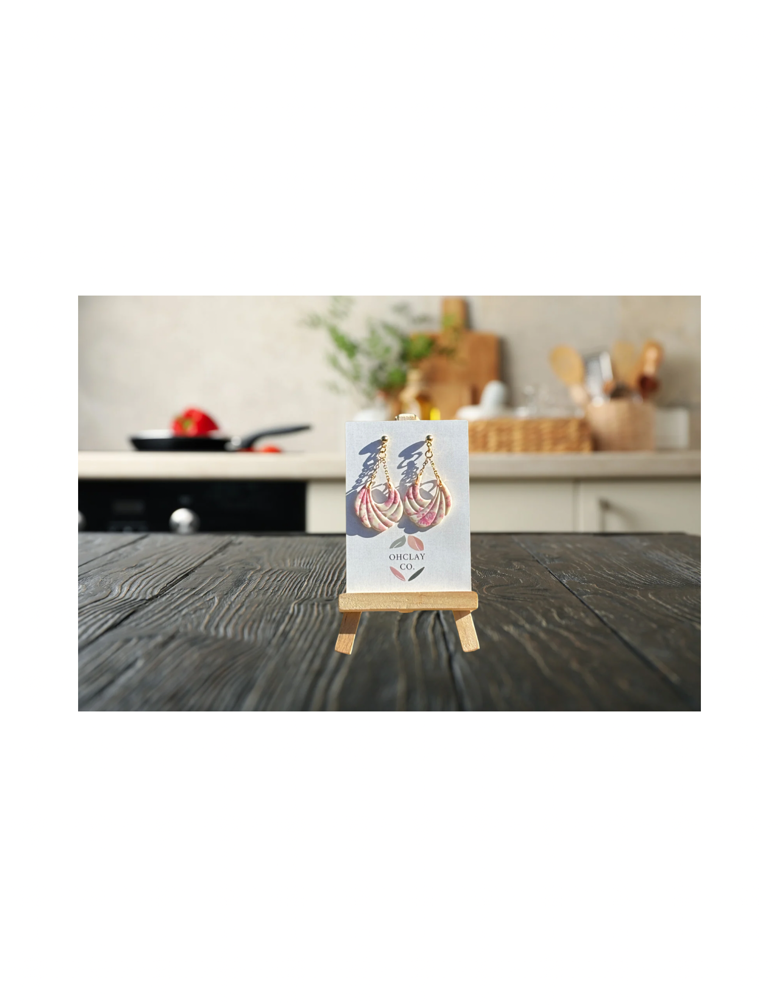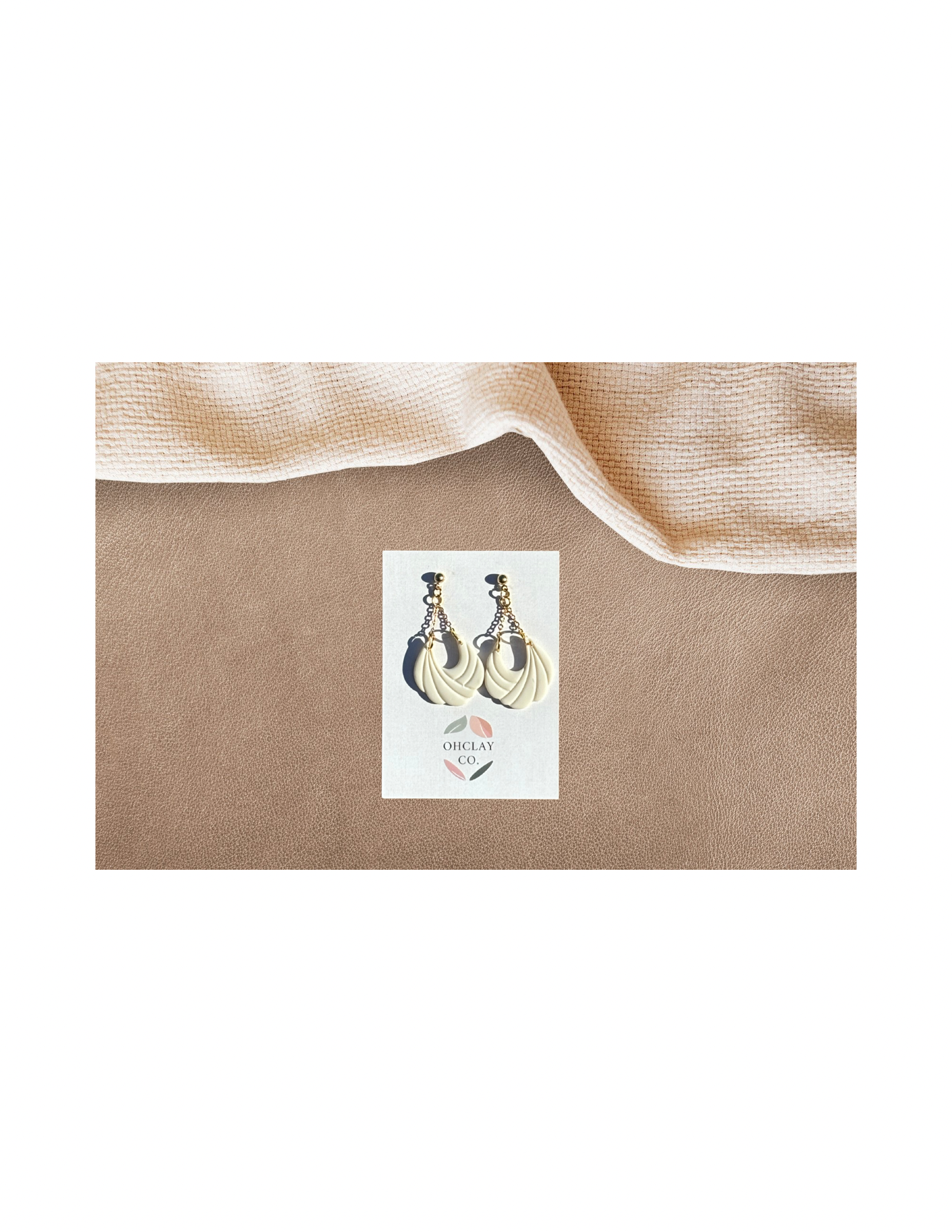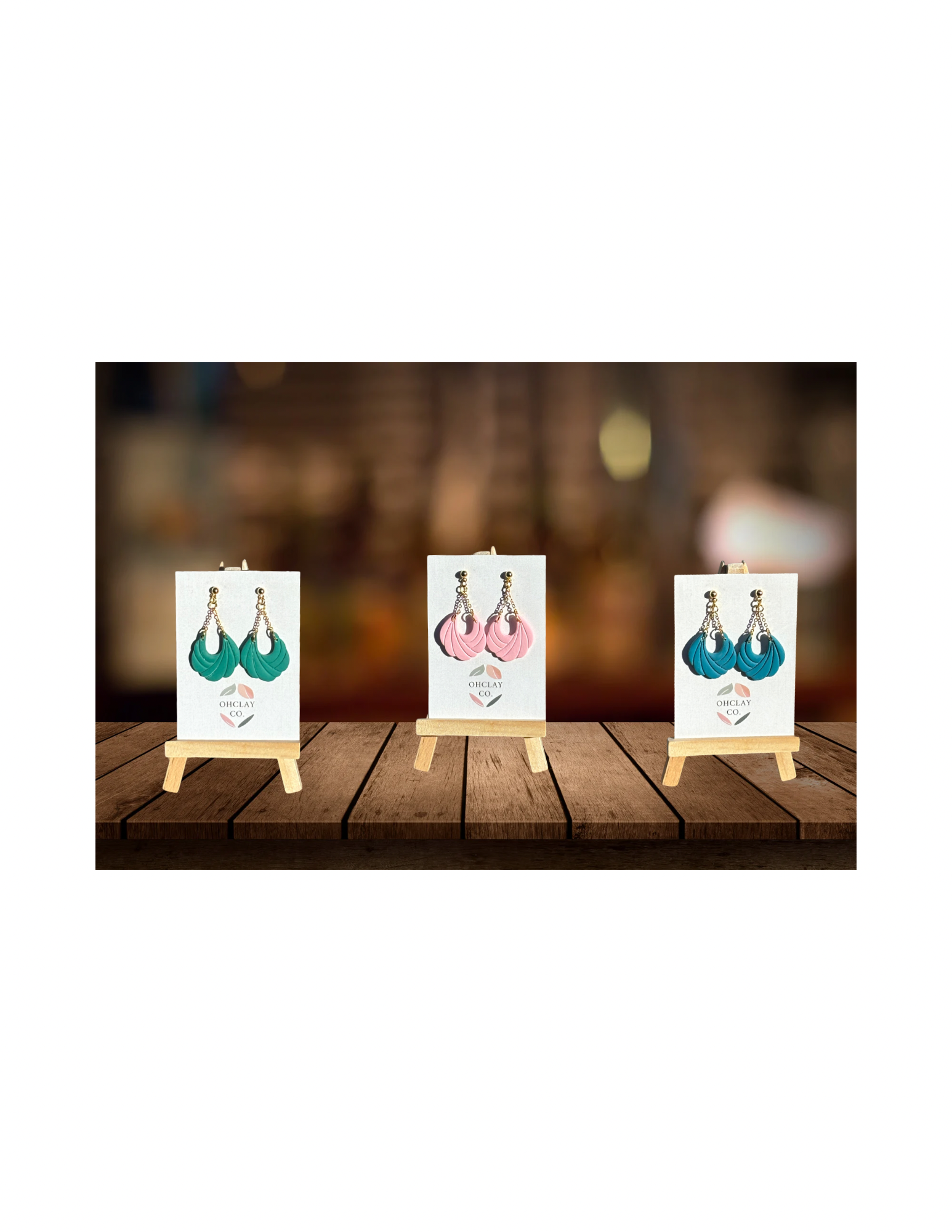 Meet the Cape Cod Twists — where coastal charm meets modern elegance. These handmade polymer clay earringsfeature a unique twisted design accented with a delicate chain detail, creating effortless movement and shine.