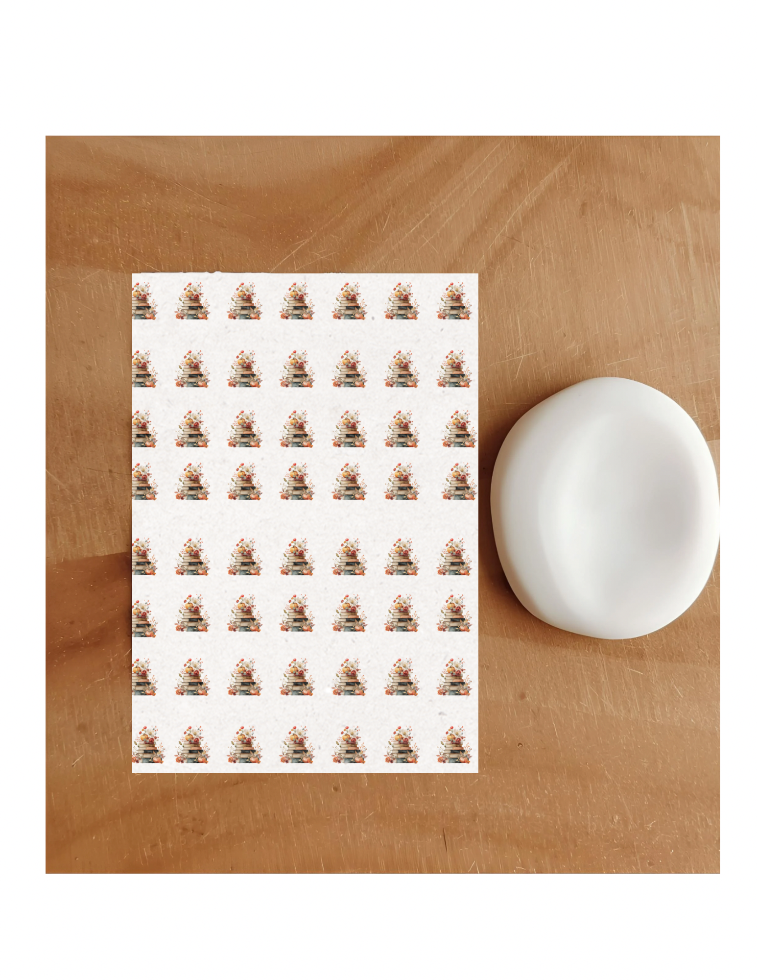 Add a touch of rustic charm to your creations with the Farmhouse Fall Bookstack sheet. This 4” x 5” water-soluble sheet features a collection of 1-inch floral images perfectly sized for earrings, charms, pendants, and other small clay projects.