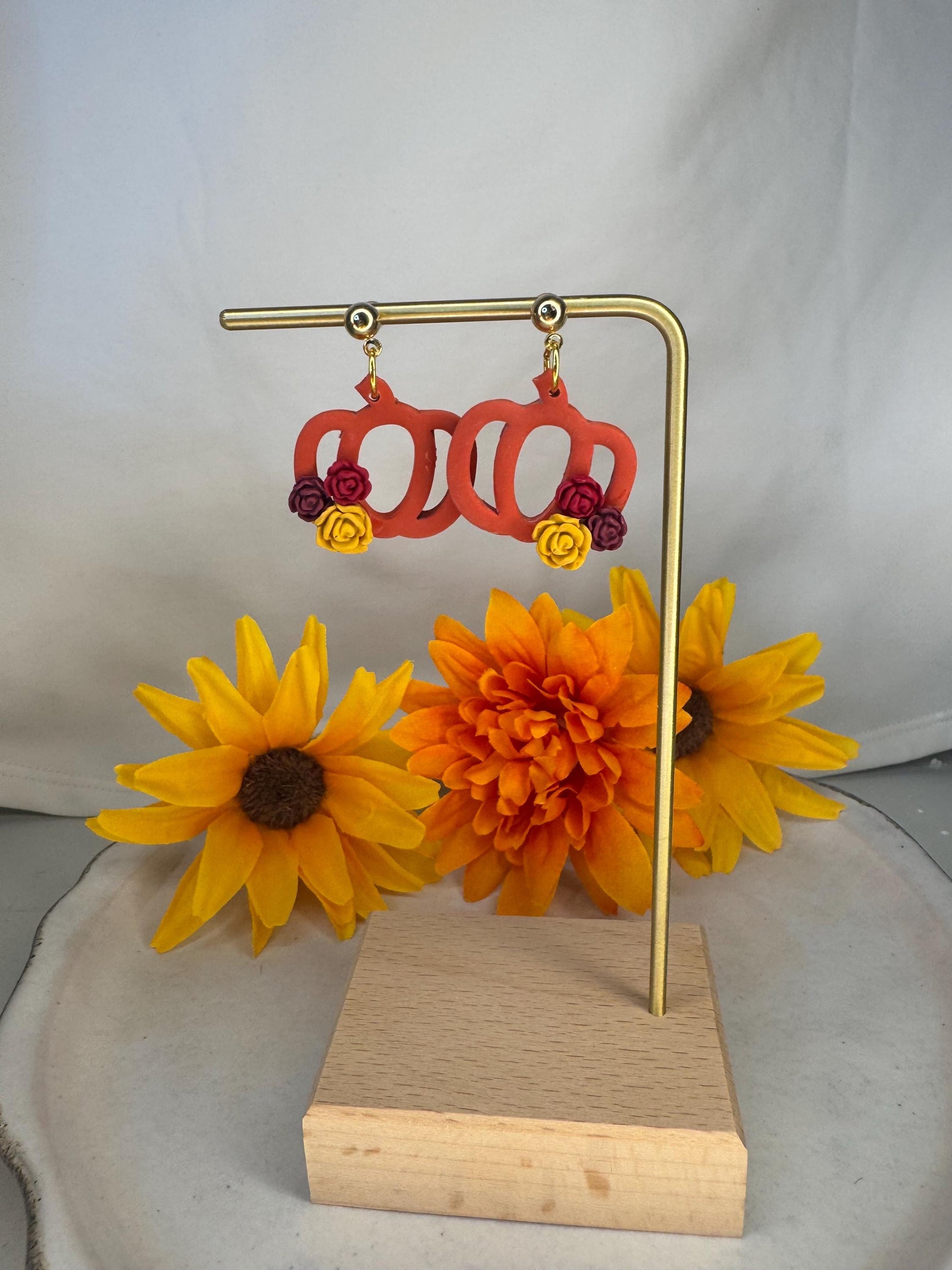 Celebrate the cozy season in style with these **handmade polymer clay pumpkin cutout earrings. Designed in rich autumn tones, each pair captures the warmth and charm of fall—perfect for pumpkin patch days, seasonal gatherings, or adding a festive touch to your everyday look.