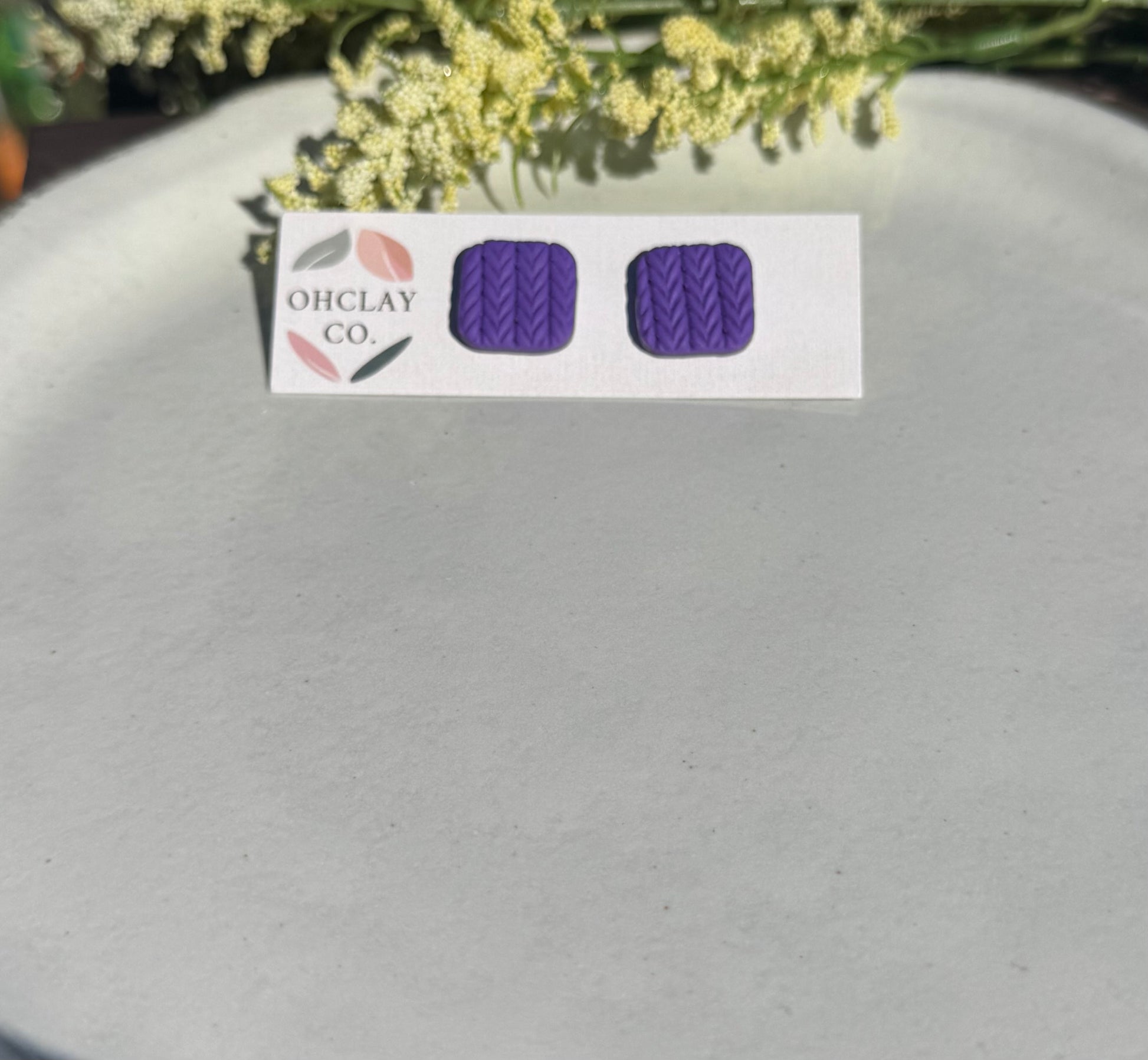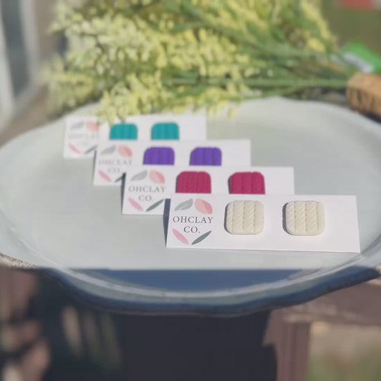 Bring cozy vibes to your look with our Sweater Collection Square Studs! These handmade polymer clay earrings feature a charming sweater-knit texture that captures all the warmth and comfort of your favorite fall layers. Each pair is carefully crafted by hand, giving every set a one-of-a-kind feel.